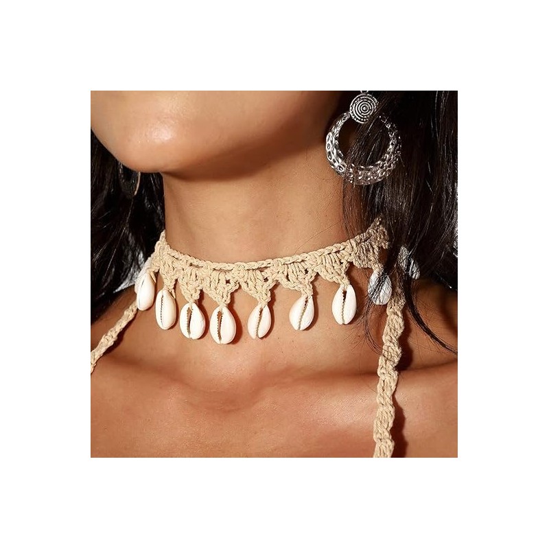 - Boho cowrie shell choker necklace for women is made of natural shell,khaki rope and a pretty lobster clasp. Natural seashell necklace is different from other artificial shells necklaces, making it more special