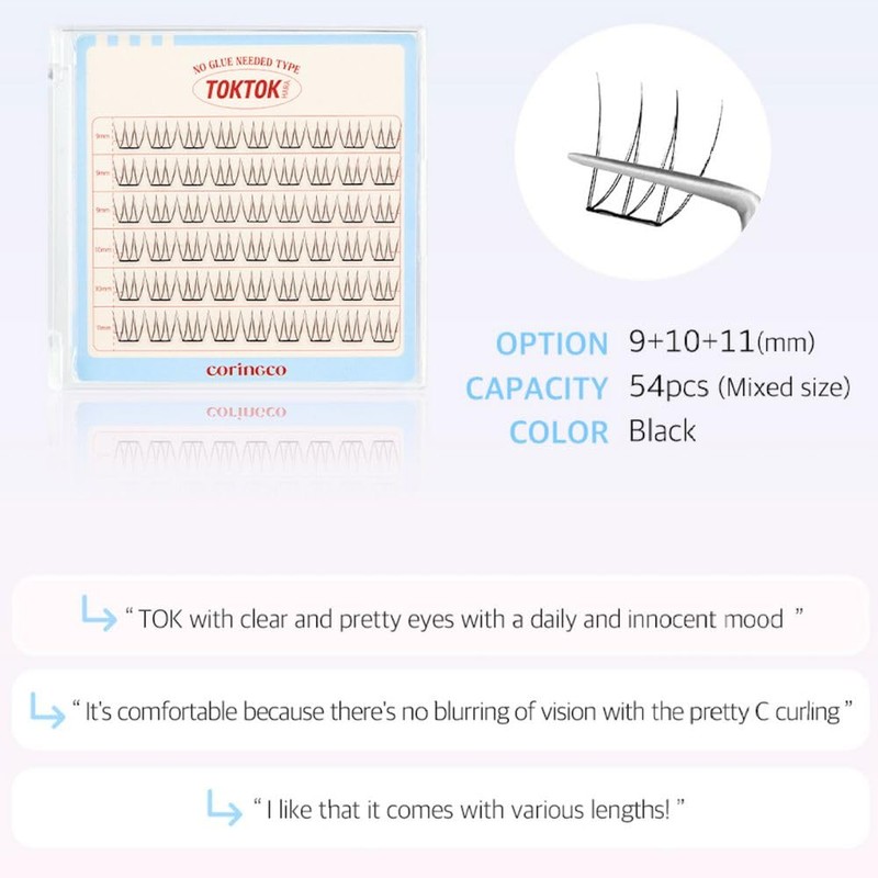 CORINGCO Toktok Hara Light Self Adhesive False Eyelashes, Natural Look, No Glue Needed, Assorted Set of 9/10/11mm, Reusable Lash Clusters Kbeauty (Pure light)