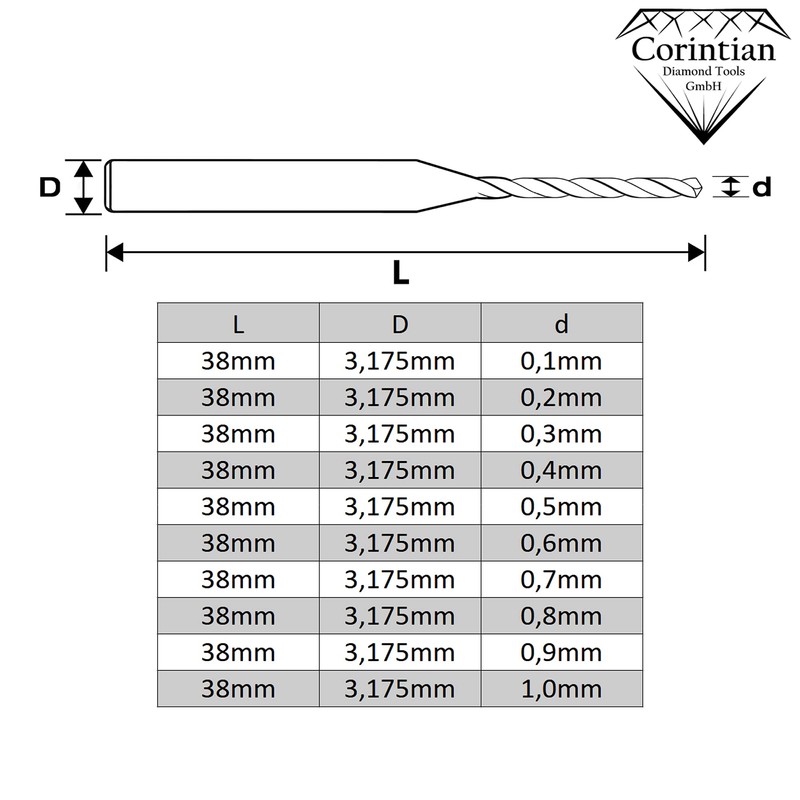 Starting at 0.1 mm, the drill bits are ideal for highly precise work on fragile surfaces such as PC boards, model making or 3D printing. With the Corintian micro drill set, you can achieve quality results.