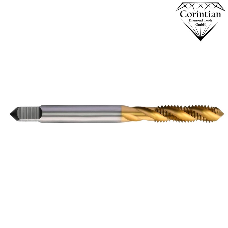Corintian HSS TiN Spiral Tap - Form C, RSP 35°, Diameter M2-M24, Machine Tap with TiN Coating for Blind Hole and Internal Thread