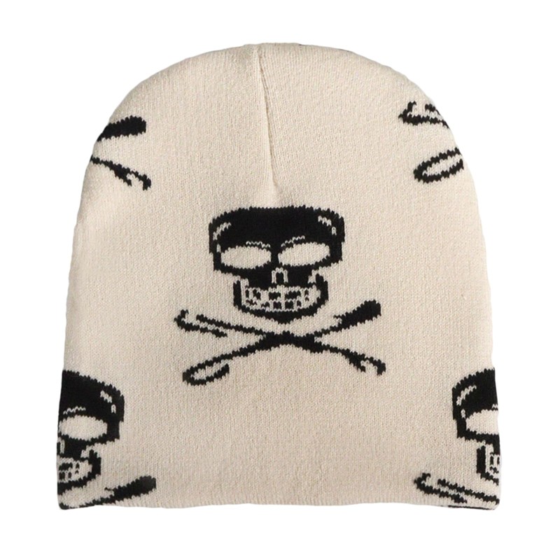 CORIRESHA Unisex Y2K Skull Pirate Jacquard Soft Beanie Warm Winter Outdoor Knit Hat, White, One Size