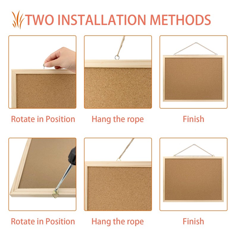 - Suitable Size: 17.7"X 13.3" (45cm X 34cm)Cork Board, Comes with 2 screws, 2 eye Bolts, 10 cork nails