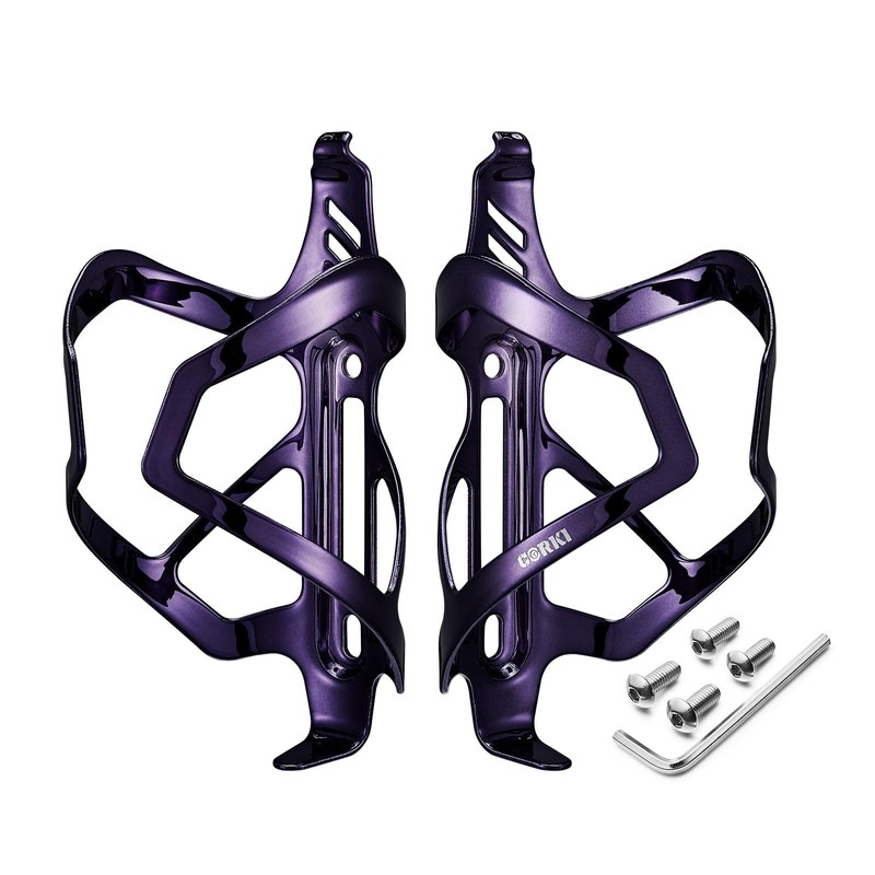 Corki Cycles Heavy Duty Bike Water Bottle Holder, Lightweight Aluminum Cage Shockproof Design for Road Mountain Gravel Bikes, Holds 21-32 oz, 2-Pack Purple