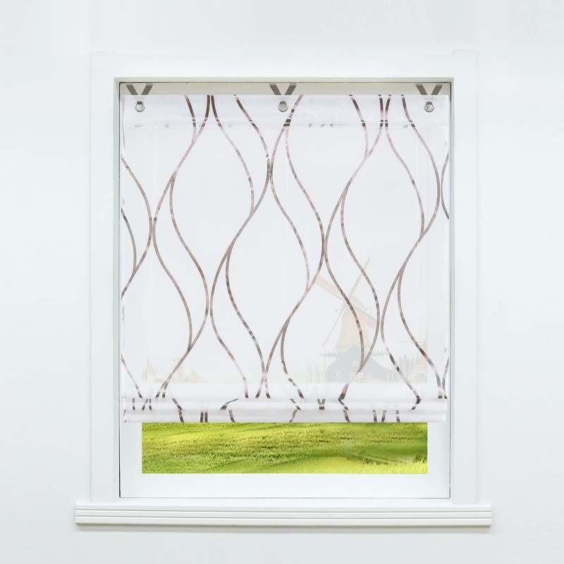 CORLIF Roman Blind with Eyelets, Kitchen Roman Curtains, Transparent Eyelet Roller Blind Curtains with Wave Print, Modern Voile Brown, W x H 80 x 130 cm, Pack of 1