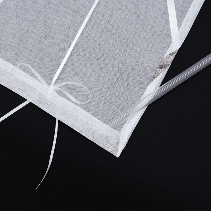 - Material and transparency: 100% polyester voile, transparent. If necessary, the curtain can be machine washed at 30 °C on a gentle cycle and ironed at a low temperature.
