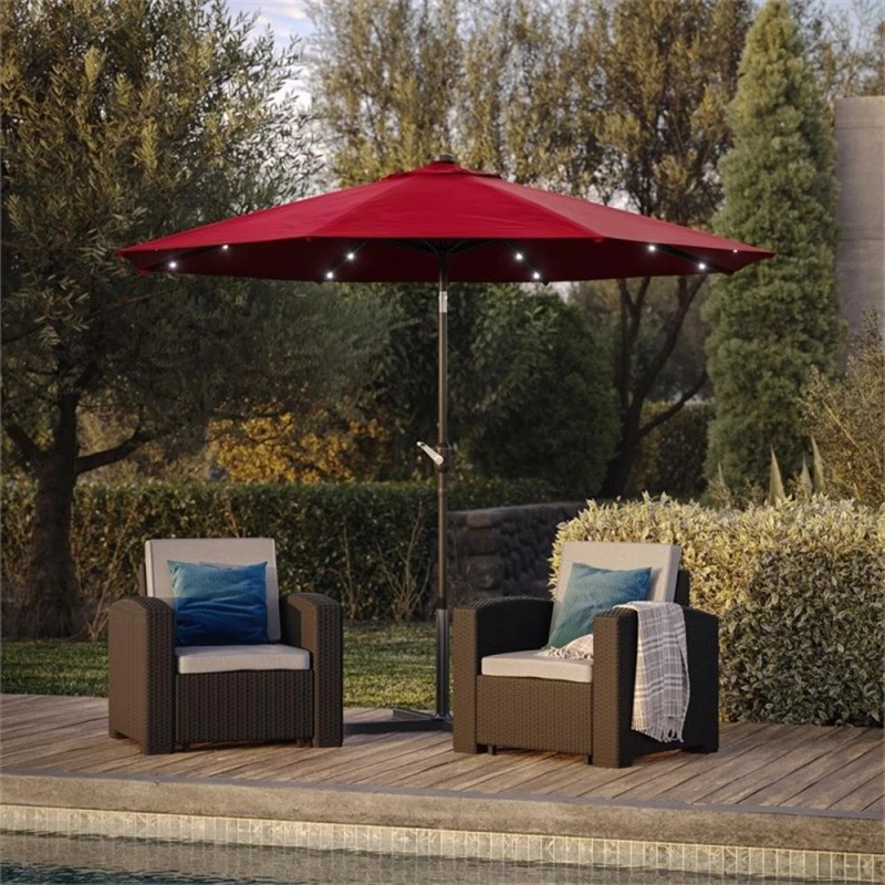 CorLiving Pegasus 9Ft Burgundy Fabric Tilting Patio Umbrella with Solar LEDs