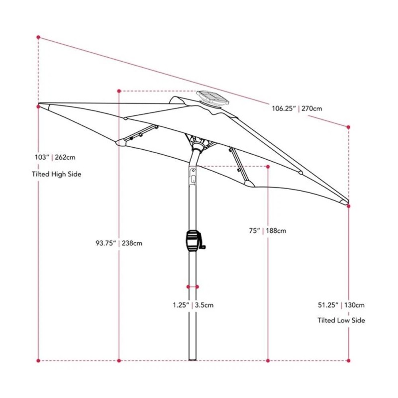 - Umbrella Dimensions: 106.25" W x 106.25" D; Pole = 75" H x 1.25" W