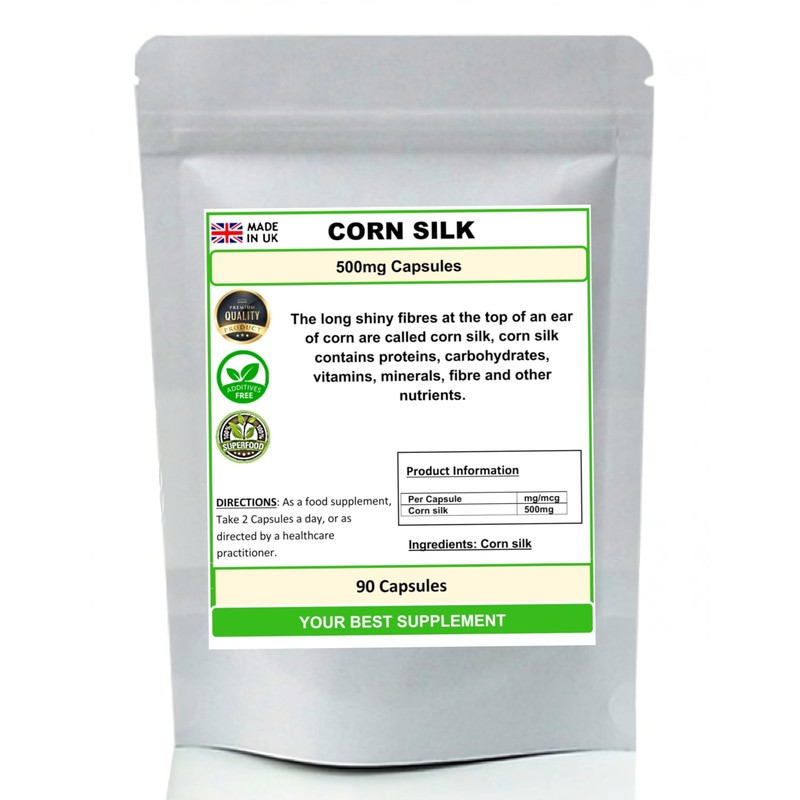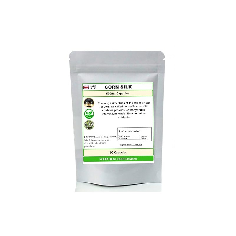 Corn silk Capsules 500mg 100% Natural Corn silk High Strength Supplement . Each capsule contains pure highest quality Corn silk (no additive or fillers). The long shiny fibers at the top of an ear of corn are called corn silk, corn silk contains proteins, carbohydrates, vitamins, minerals,fiber and other nutrients. Suggested use As a food supplement for adults take 2 Capsules a day with water,or as directed by a healthcare practitioner. Ingredients: 100% Corn silk Allergen Advice: Produced in a facility that handles Nuts, Seeds and Almonds. Corn silk is a nutritional powerhouse there is a range of potential benefits of Corn silk ...... Food supplements must not be used as a substitute for a varied and balanced diet and a healthy lifestyle. Store in a cool dry place, keep out of direct sunlight, out of reach and sight of children.
