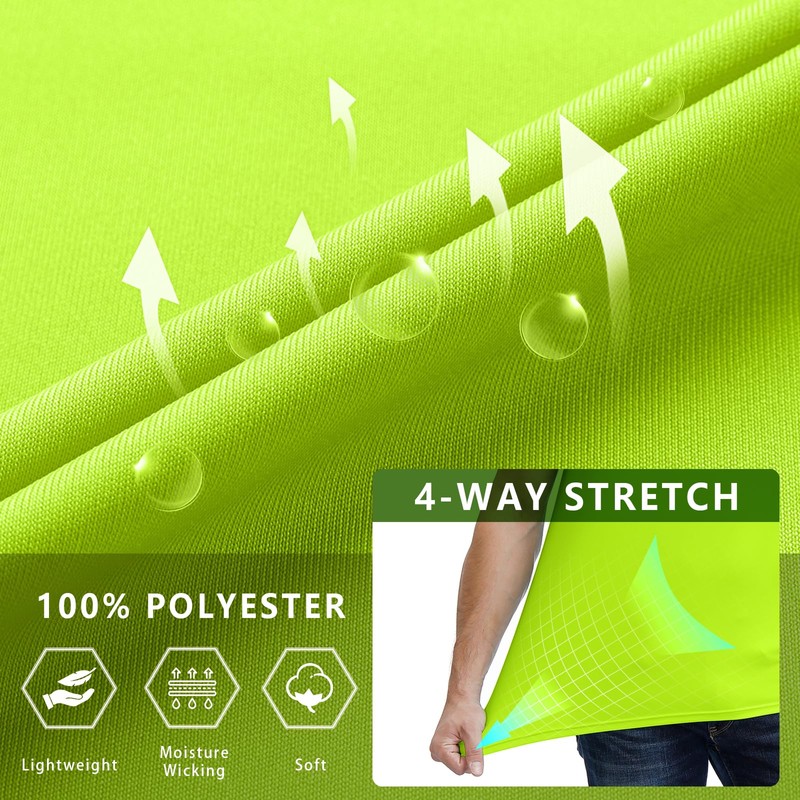 Corna Cool Dry Mens Big and Tall Florescent Performance T Shirts Pack-Crew Neck HI VIZ Yellow-S