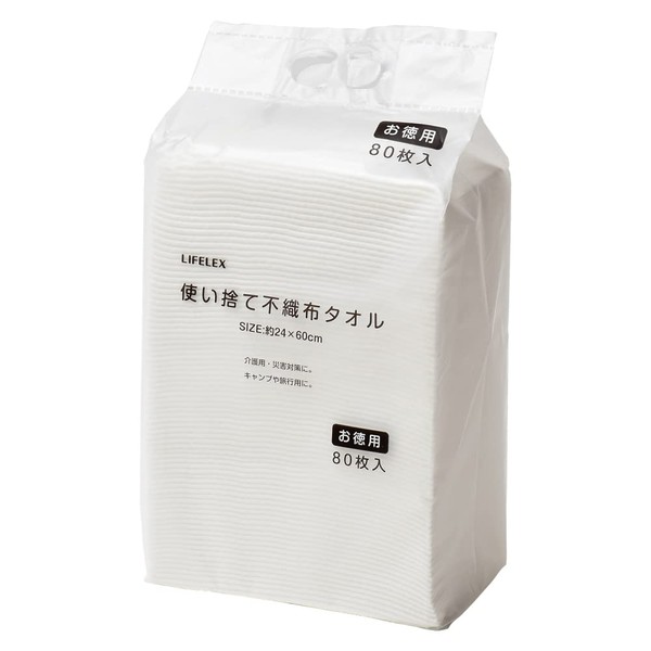 - [Features] Disposable towels made of natural materials that are gentle on the skin. For wiping off after a bath or face. ● For emergencies, camping and traveling. Specifications: Size: Approx. 9.4 x 23.6 inches (24 x 60 cm); Number of sheets: 80 pieces; Composition: 100% rayon; White