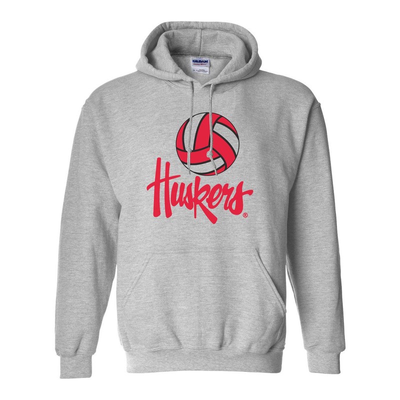 CornBorn Nebraska Sweatshirt - Hooded Nebraska Volleyball Legacy Script Huskers - Gray - XL