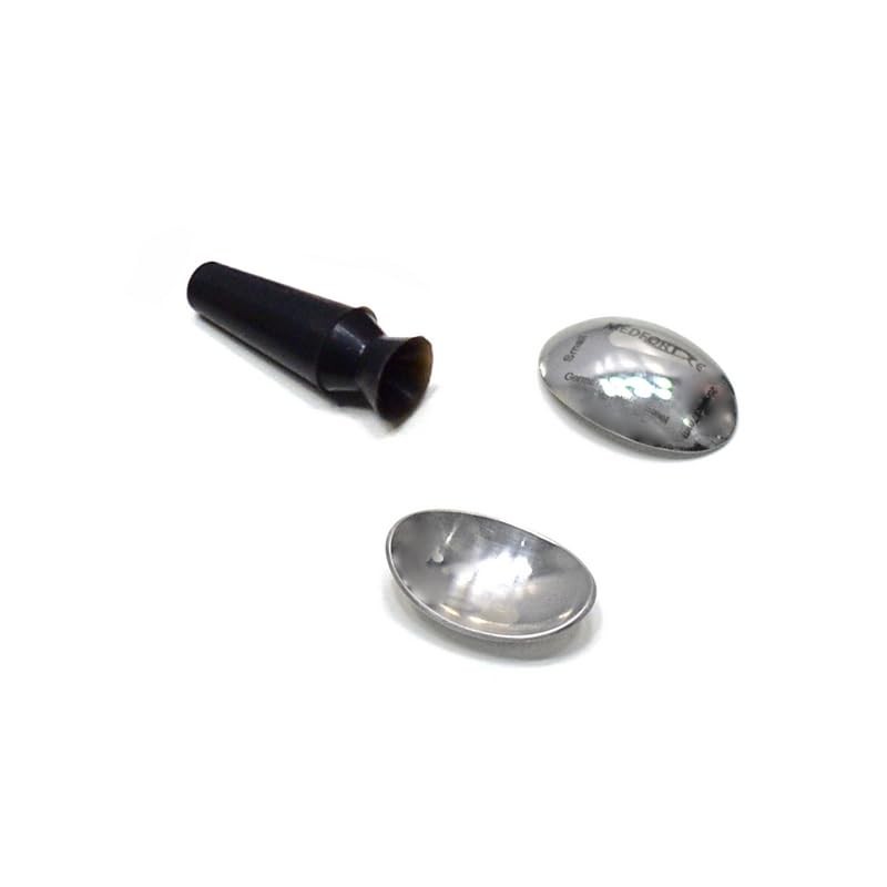 Protect your eyes during medical procedures with this set of three corneal eye shields. Made of durable stainless steel, these eye protectors feature a suction pump design that securely adheres to the eye area, providing a reliable barrier against fluids, debris, and accidental contact. Measuring 26mm by 17mm, the small size ensures a comfortable fit for most patients. These reusable shields are easy to clean and sterilize, making them a practical choice for healthcare professionals. Whether you're performing eye surgeries, examinations, or other delicate procedures, these corneal eye shields offer peace of mind and safeguard your patients' eyes from potential harm.