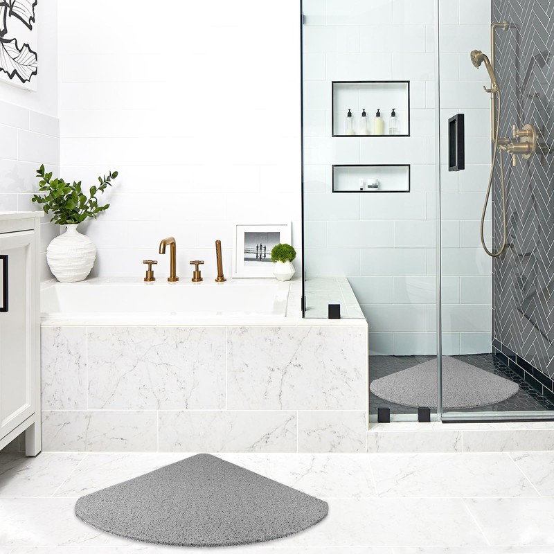 Corner Shower Mat Non Slip: 60 x 60 cm Loofah Shower Mats for Inside Shower - Quadrant Shower Tray Matt Anti Mould for Elderly