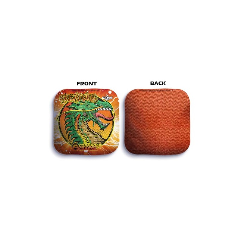 Cornhole Coastal Set of 4 Regulation Professional Corn Hole Bags for Cornhole Toss Games - for All Skill Levels (Creature, Dragon Orange)