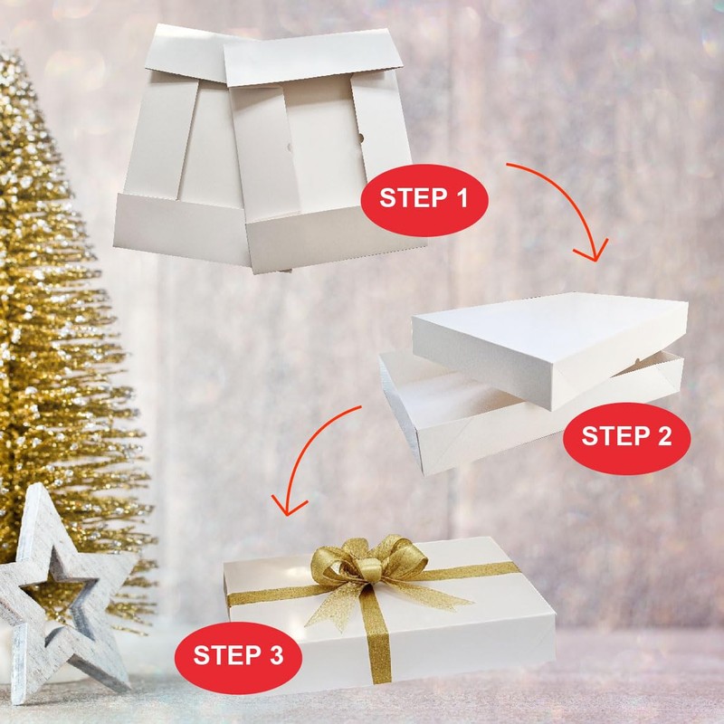 - PREMIUM LARGE GIFT BOXES - Each gift wrapped box with lid is made of premium quality white card stock paper that are sturdy to hold thick sweaters or coat, dress shirts, wedding lingerie, adult robes, and even large blanket.