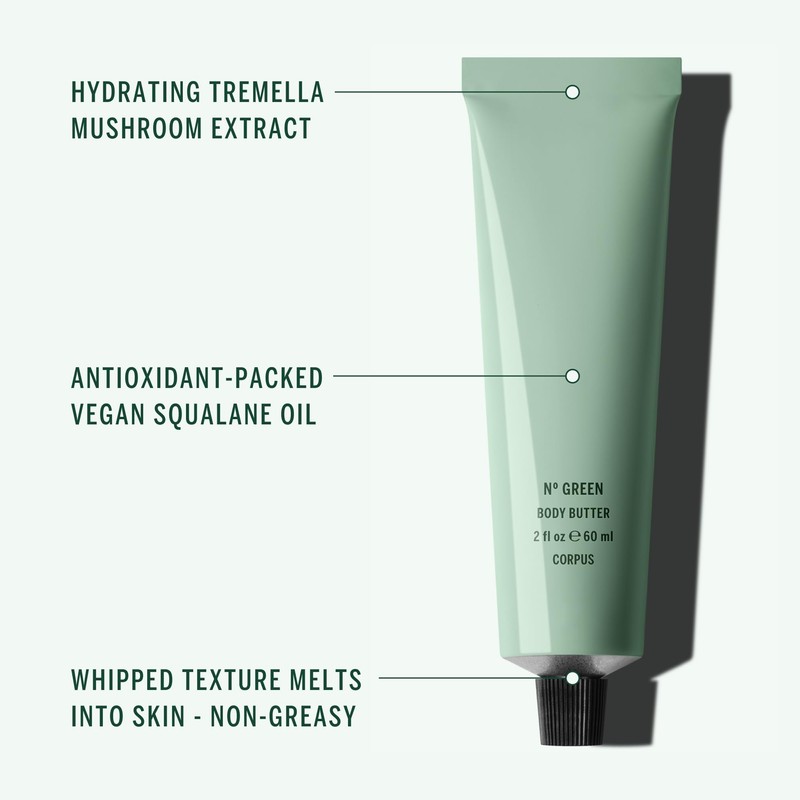 Corpus - Nº Green Body Butter | Ultra-Rich Body Cream, Whipped Texture Melts into Skin | Luxurious Non-Greasy Hydrating Plant-Based Formula with Tremella Mushroom & Vegan Squalane (60 mL / 2 fl oz)