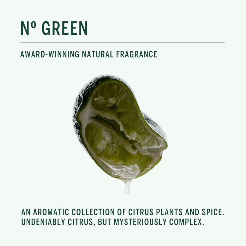 - SCENT: Naturally Extracted From The Root, Seed, Stem, Pulp + Rind, Our Nº Green Is A Complex Collection Of Citrus Plants + Spice. Undeniably Citrus But Mysteriously Complex.