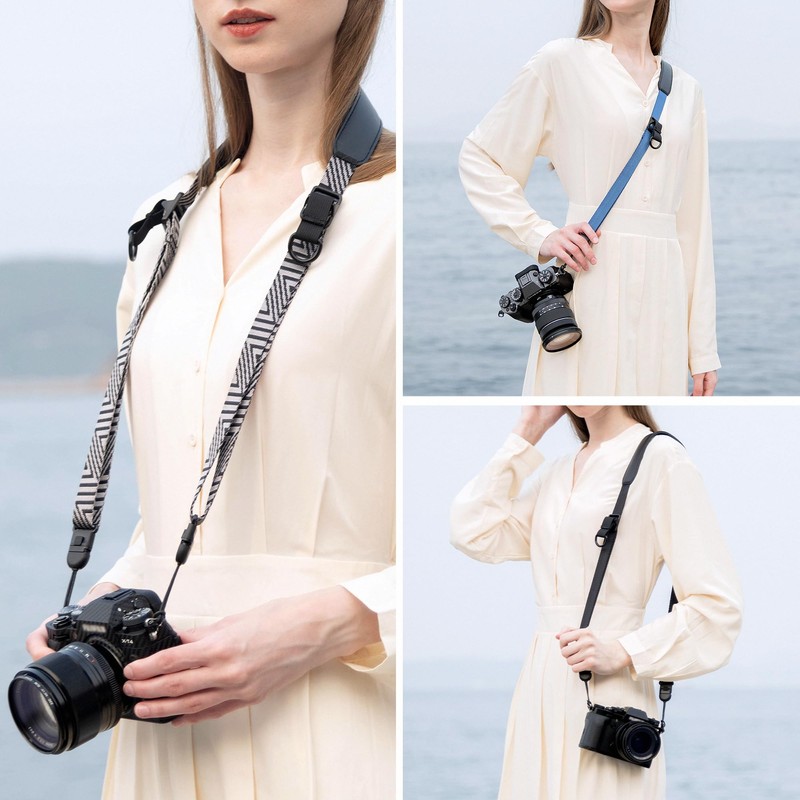La correa de liberación rápida JJC QRS-M1 está especialmente diseñada para cámaras sin espejo, que es adecuada para estilos de estilo eslinga, transporte de hombro y cuello de transporte. La correa para cámara viene en colores negro, azul y gris plateado para satisfacer tus diferentes favores de color. Hecho de material de cincha de nailon tipo cinturón de seguridad ultra suave, la correa es segura y duradera para años de uso. Mientras que la almohadilla fija para el hombro está fabricada con material de piel de microfibra de alta calidad, suave, transpirable y antideslizante; diseñada con forma cómoda, la almohadilla puede adaptarse perfectamente alrededor del hombro y distribuir el peso de manera efectiva. Características con ajustadores rápidos de doble longitud, la correa soporta ajuste de longitud con una sola mano. Tirando del anillo en D en el ajustador rápido de longitud puede deslizar rápidamente el ajustador y ajustar fácilmente la longitud de la correa, conveniente para lograr diferentes estilos de transporte o satisfacer las necesidades de diferentes físicos; la longitud ajustable de la correa es de 95 cm a 145 cm.