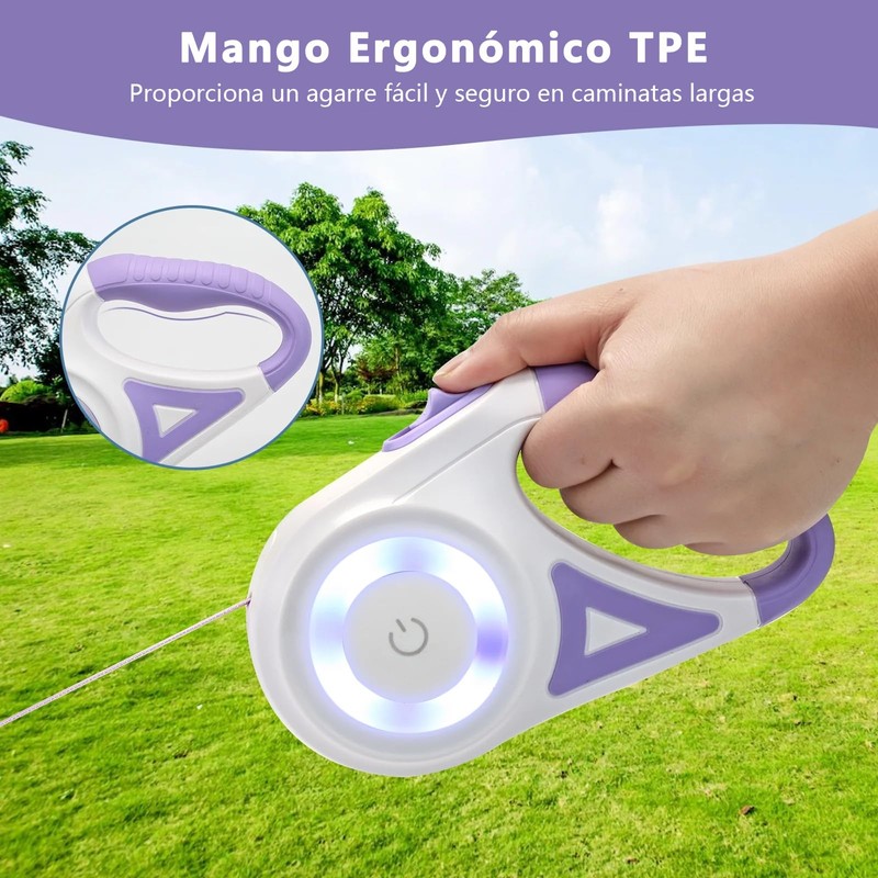 Correa Retractil para Perro 5 Metros, Correa para Perro Retractil luz LED y s...