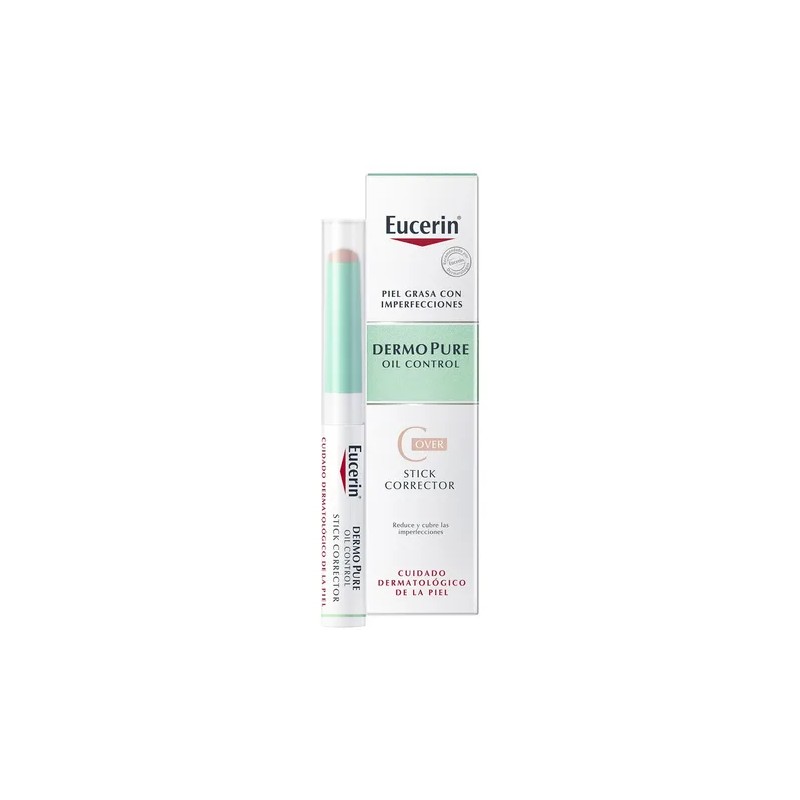 Eucerin DermoPURE Stick corrector con ácido salicílico y pigmentos de color que corrige y reduce las imperfecciones; calma la irritación y cubre imperfecciones y puntos negros, eliminando la obstrucción de poros.