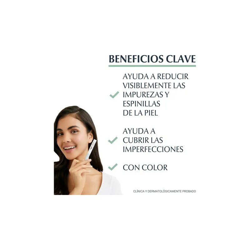 El ácido salicílico ayuda a reducir las espinillas y previene su reaparición. Los Pigmentos de color ayudan a cubrir de manera inmediata las imperfecciones de la piel. Aplicar una fina capa sobre las imperfecciones de la piel hasta 3 veces al día. No se aplique en los labios ni en la piel debajo de los ojos.