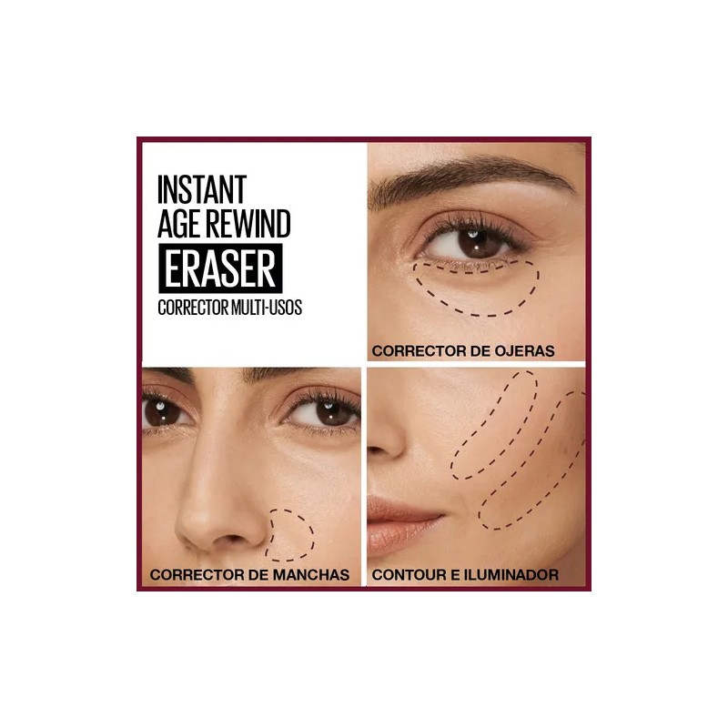 Corrector Facial Maybelline Instant Age Rewind: Este corrector de ojeras y líneas finas proporciona un aspecto fresco y radiante alrededor de los ojos.