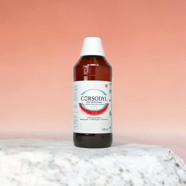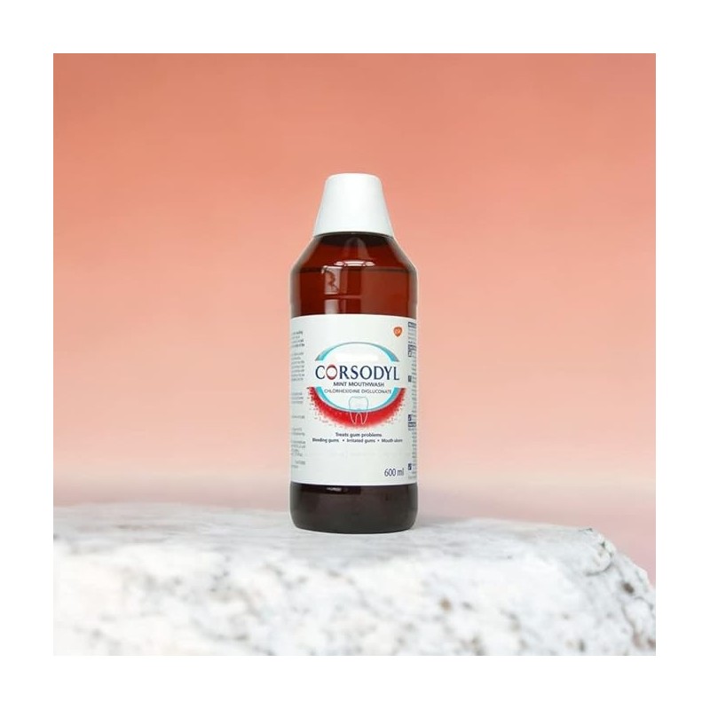 Corsodyl Mint Flavour Mouthwash, 600ml Specially Designed Benefits for Stop and Prevent Bleeding Gums, Irritated Gums, Mouth Ulcers