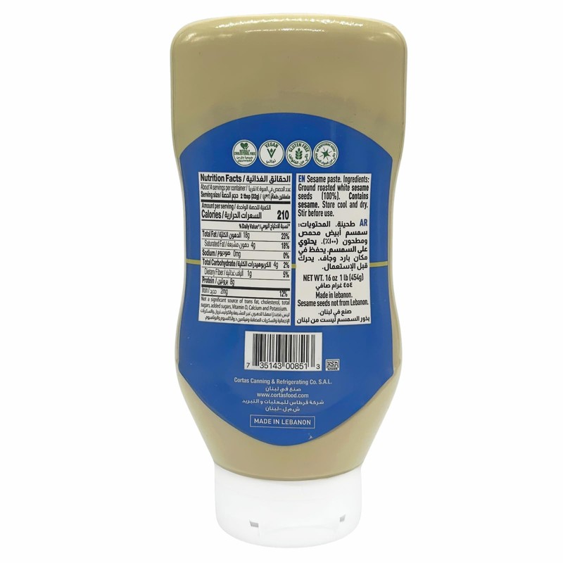 Cortas - Tahina, 16 oz (454g), All Natural Sesame Paste in a Squeeze Bottle