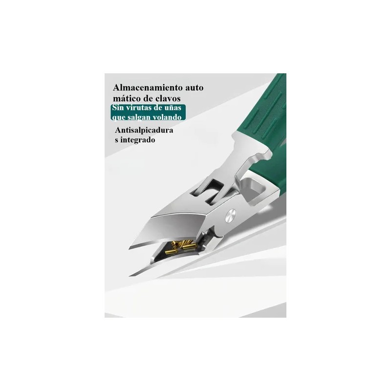 - Una sola pieza antisalpicaduras: recoge automáticamente los recortes de uñas sin que salgan volando