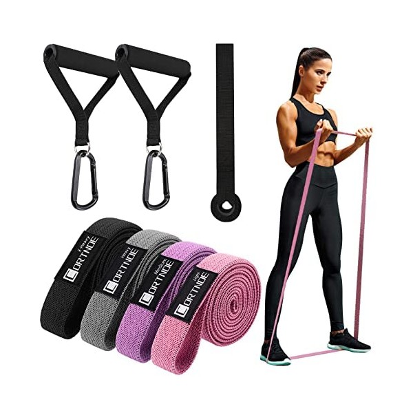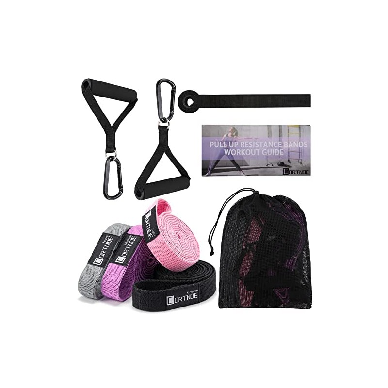 - STRONGER RESISTANCE BANDS SET The outer part of the fabric resistance bands is made of natural fabric, which has no breakdown or stretch marks when stretched, making it has strong wear resistance and perfect elasticity. Unlike rubberized resistance band sets, CORTNOE pull-up aids do not have the latex smell of rubber bands. Non-slip material that does not slip or roll down during exercise, its soft knitted surfaces do not rub against the skin.
