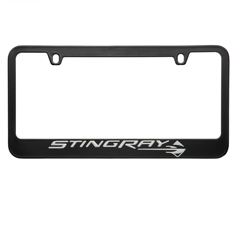 - Black 2 stage painted engraved license frame. Correct Corvette C7 stingray logo and trademark.