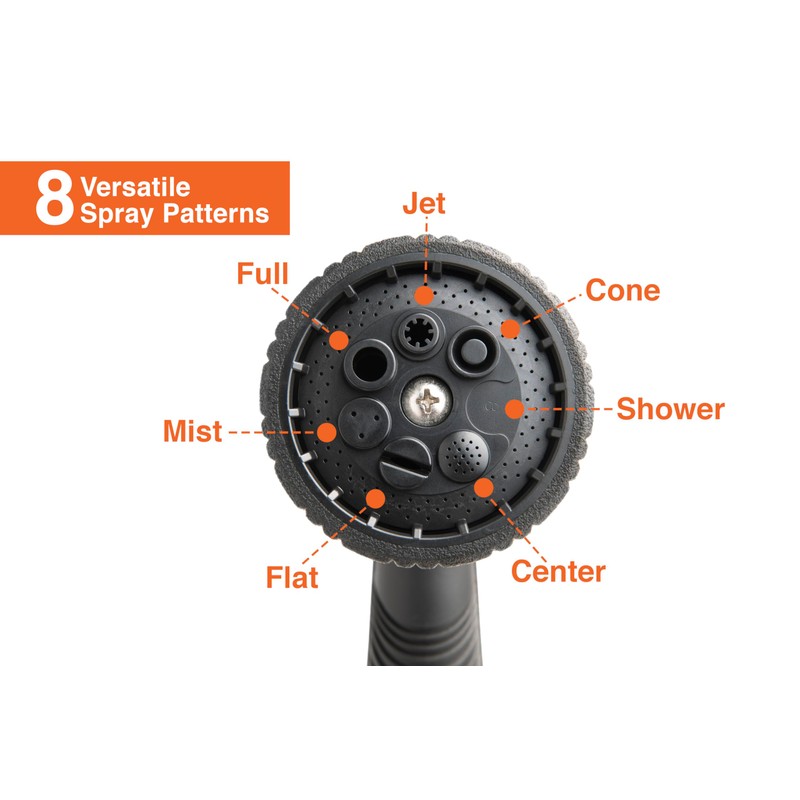 - 8 Versatile Spray Patterns: Ergonomic design with 8 adjustable spray settings, including mist, shower, cone, and jet, perfect for any task from gentle watering to high-pressure cleaning.