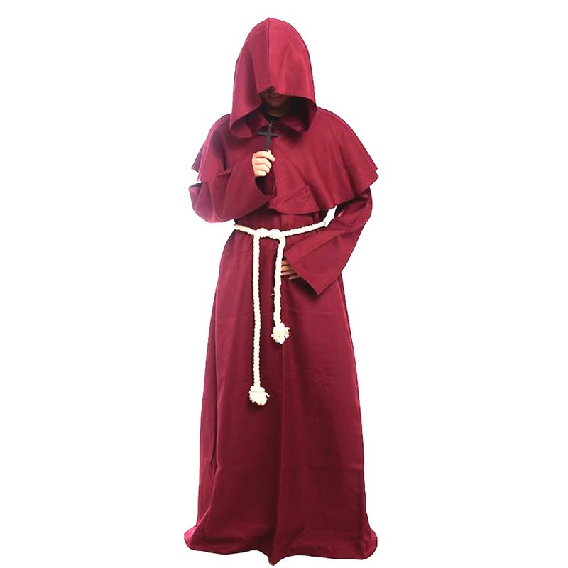 Cos2be Medieval Priest Monk Robe Hooded Cloak Wizard Sorcerer Cape (Medium,Wine Robe)