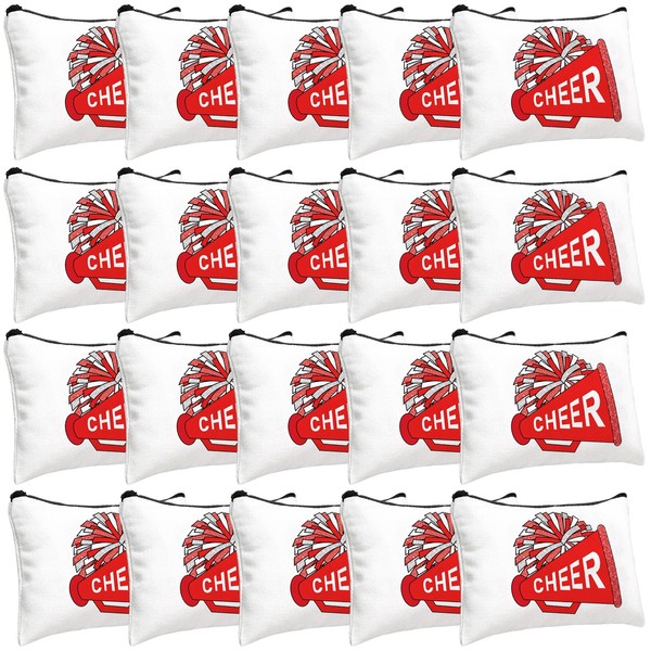 Cosblank 20 Pcs Cheer Makeup Bag Cheer Teams Gifts Cheer Canvas Makeup Case Cheerleader Cheer Teams Gifts Zipper Pouch for Teen Girls Women Teammates Cheer Party Supplies(Red)