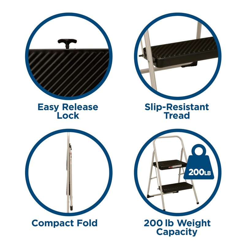 Cosco 11135CLG1E 2-Step Household Folding Step Stool, Gray