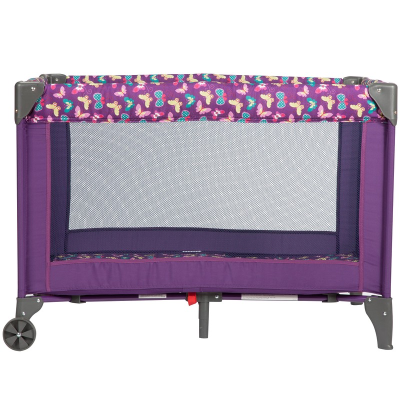 Fun at home or on the run, the Cosco Kids? Funsport? Play Yard features a no-nonsense design that sets up in seconds. It has plenty of space for baby to nap or play. It's also easy to move from room to room thanks to the smooth-rolling wheels on one end. Then there are 4 mesh sides with a padded floor that let baby look out and see the action, all while letting you look in to catch a glimpse at what your little one's doing.For those weekend trips to Grandma's house, the compact fold and carry bag make it easy to toss in the trunk and take along for the ride. No matter where you go, with the Cosco Kids? Funsport? Play Yard, you'll always have a fun place for your little to play.This product is designed with a firm, flat sleeping surface that meets the Consumer Product Safety Commission's recommendations for safe sleep.