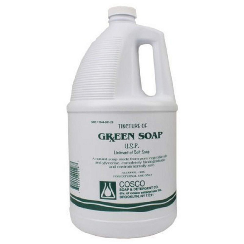 Cosco pure green soap 1 gallon Cosco green soap is the most trusted sanitation product in the tattoo industry today. Used to prep skin pre-tattoo, for stencil application, and even post-tattoo cleansing, green soap should be found in any professional tattoo shop. Green soap is made with natural vegetable oils, lavender, is biodegradable, and environmentally safe and made in the USA. This concentrated solution should be diluted before use. Made in the USA 1 gallon (128oz) bottle use for stencil application pure concentrated green soap mix 4 parts water to one part green soap concentrate.
