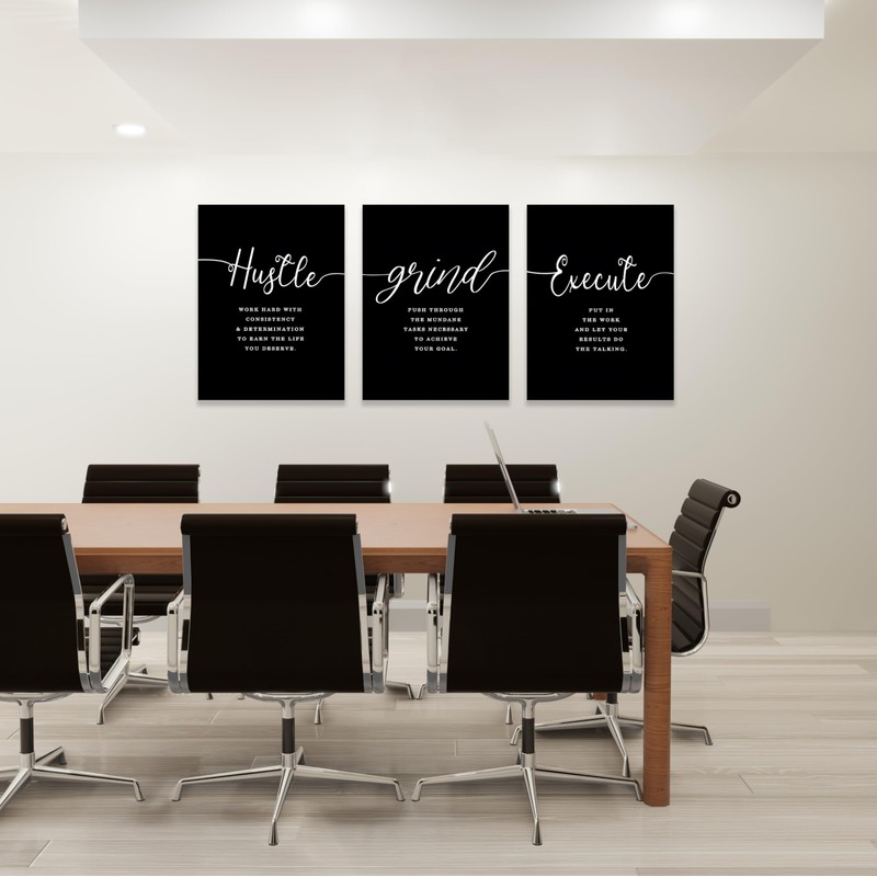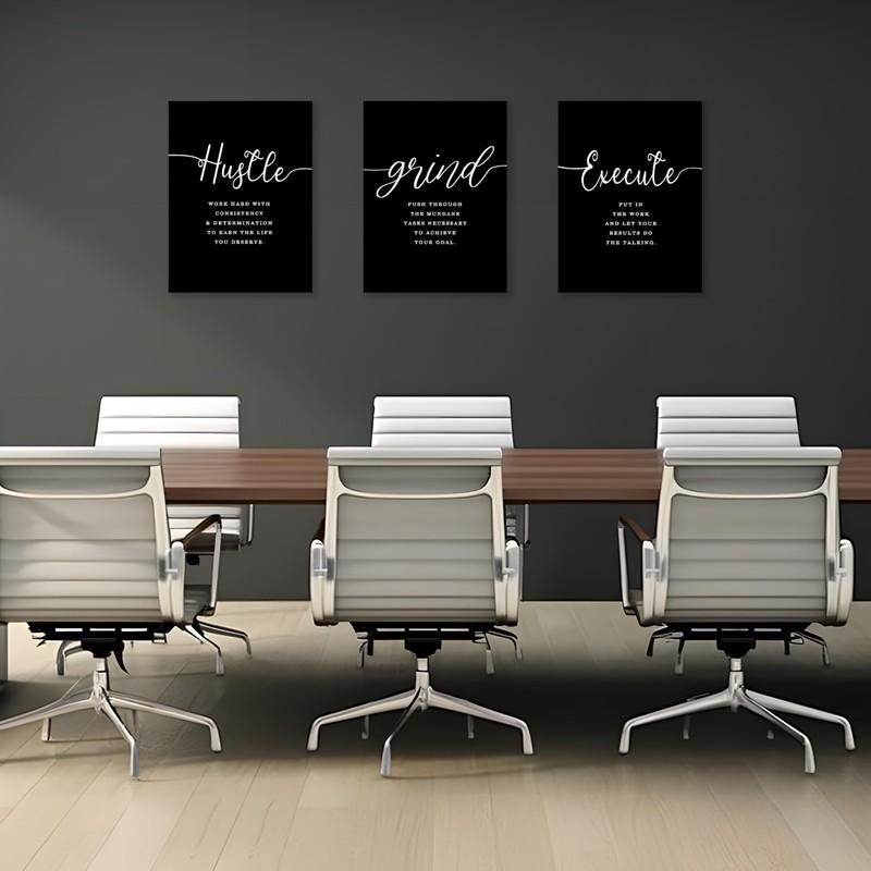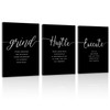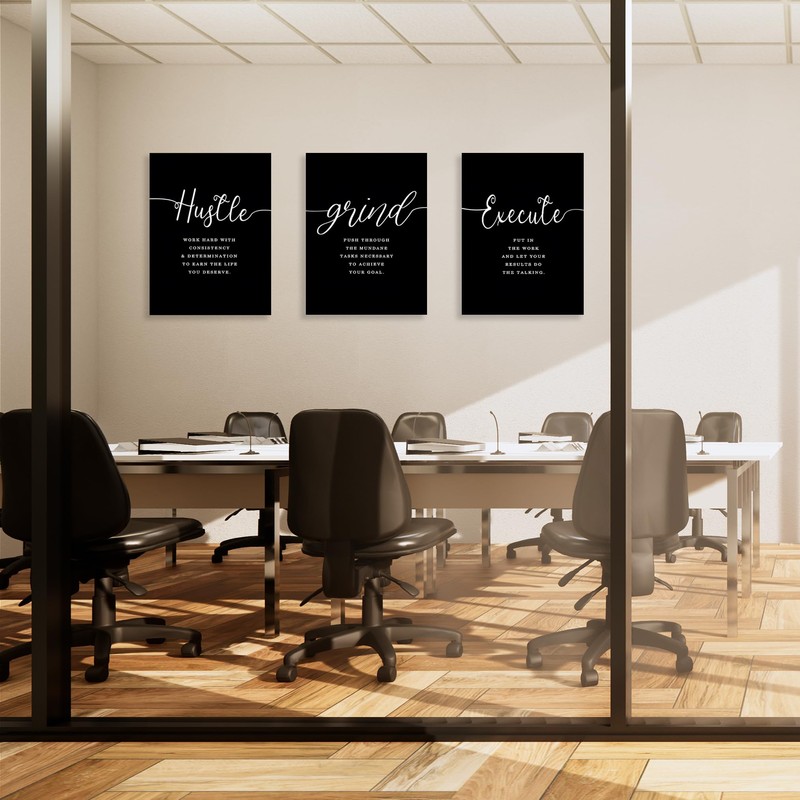 COSCTOR Set of 3 Motivational Posters Wall Art Canvas for Office Workplace Garage Gym Living Room Bedroom Grind Hustle Execute Black and White Wall Decor Inspirational Quotes Paintings(Framed,16x24)