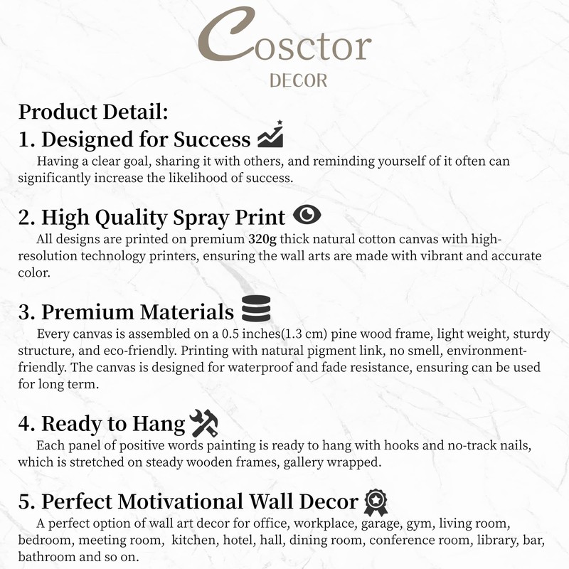 - 【Ready to Hang】Each panel of positive words painting is ready to hang with hooks and no-track nails, which is stretched on steady wooden frames, gallery wrapped.