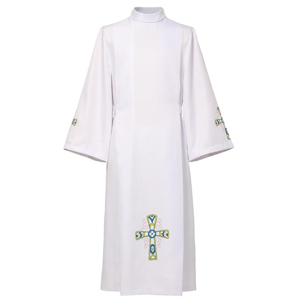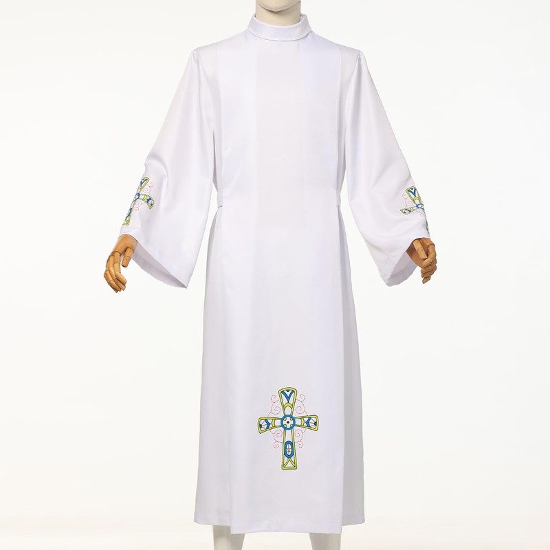 COSDREAMER Catholic Priest Alb Pleated Cross Pulpit Liturgical Cotta Vestment Robe Unisex