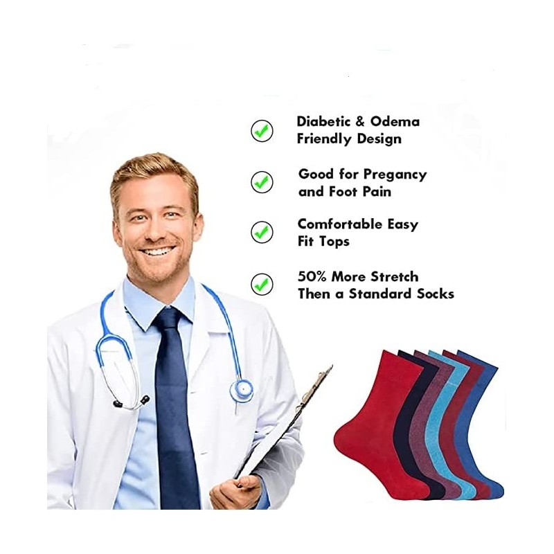 - UNRESTRICTED COMFORT: The soft-grip ribbing and stretch top minimize marks on your legs avoid pressure points and stops these wide socks from slipping or sliding down. These socks feel soft to the touch with their comfortable and warm cotton fibres. Non-irritating hand-linked soft toe with odour-resistant and anti-bacterial fabric is essential to promote comfort for diabetics and prevents odours. Reinforced toe and heel absorb jarring shock to help prevent pains.
