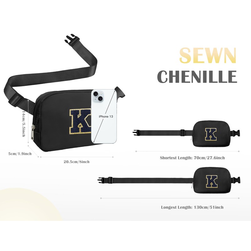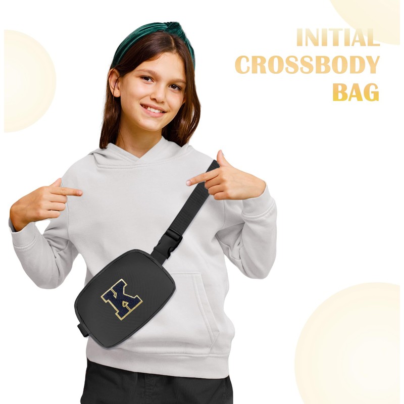 - [SEWN Chenille Letter Patch A-Z Embroidered on Boys Women Girls Fanny Pack] Puffy initial letters permanently fixed on the black fanny pack for boys women girls, Machine Wash Support, as a top trendy gift for every festival; Valentines Day gifts for son from mom, Easter Day gifts for grandson, Mothers Day gifts belt bag for mom, Fathers Day gifts for daughter from dad, Nurse Day Teachers Appreciation gifts, Halloween Thanksgiving Christmas New Year Gifts for niece nephew from auntie.