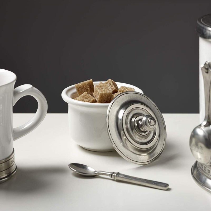 COSI TABELLINI COSI TABELLINI White Ceramic Pewter Sugar Pot Height 3.5 inches (8.8 cm) Diameter 3.7 inches (9.5 cm)