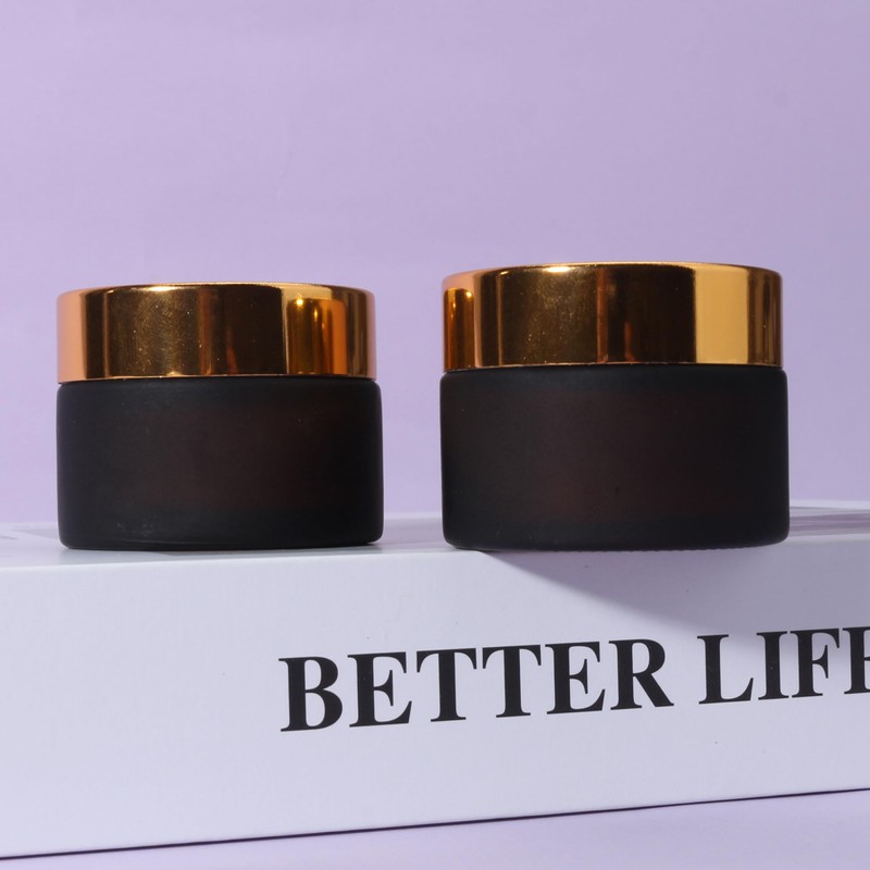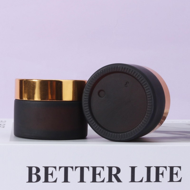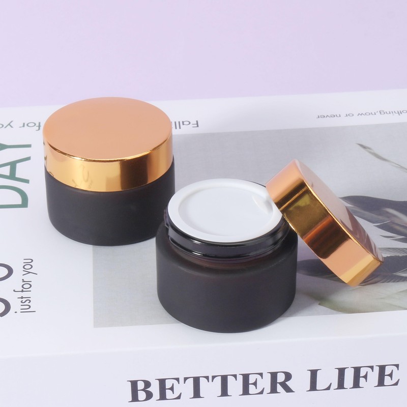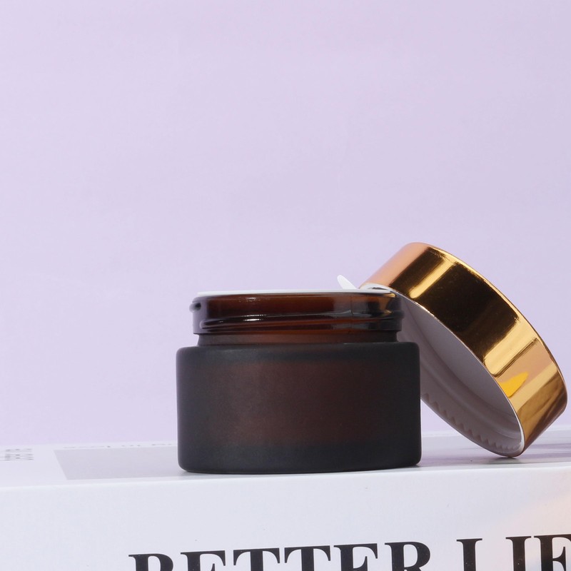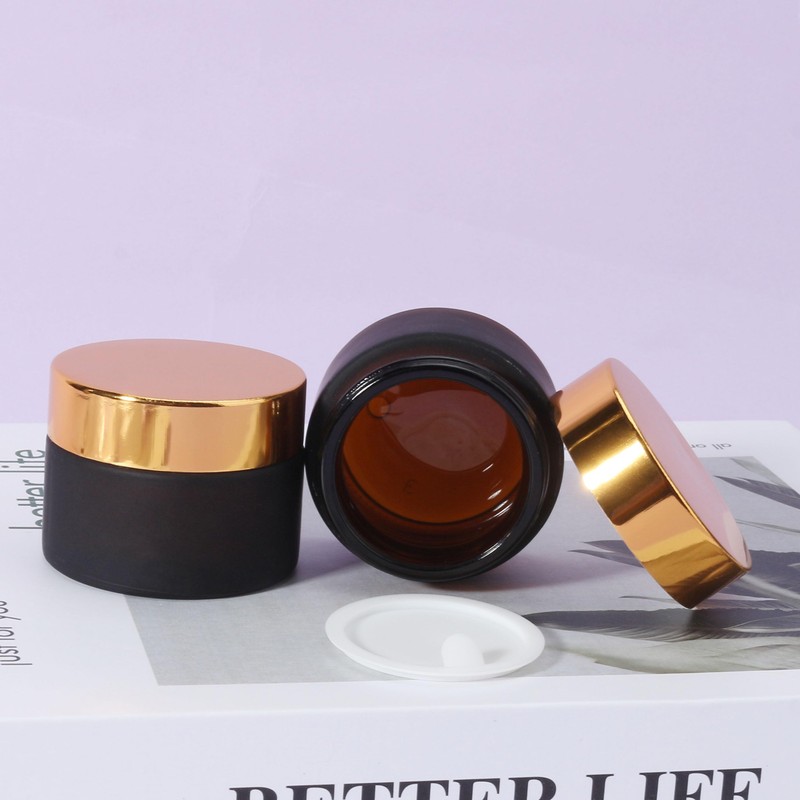 COSIDEA 15 pcs Empty 1oz 30G Frosted Amber glass jar with Gold lid Brown cream jars pot for refill DIY cosmetics ointment