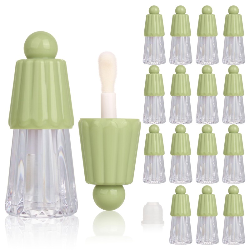 COSIDEA 15pcs 4ml Cute empty lip gloss tubes with fat wand Green short chubby big doe foot lipgloss tube