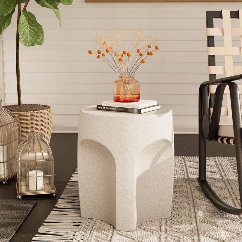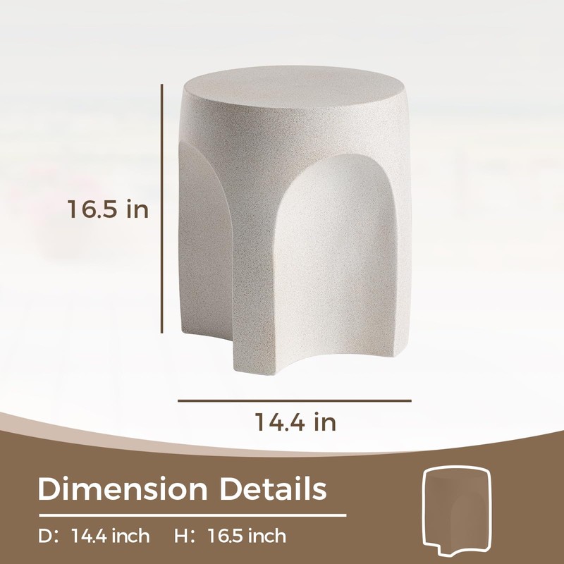• [Drum Design]Set of 2 Outdoor side table with inspiration taken from a drum shape, patio table is given a sleek modern update. Made from great matrial mgo composite and handcraft, patio side table has deeply carved side arches and a smooth top, it can fit well into your home style and decorate your garden as well.