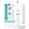 COSLUS Electric Toothbrush for Adults and Kids: Wireless Rechargeable Tooth Brush with Portable Travel Case, 5 Modes 47000 VPM Power Toothbrushes 6 Brush Heads 1 Charge for 70 Days Green