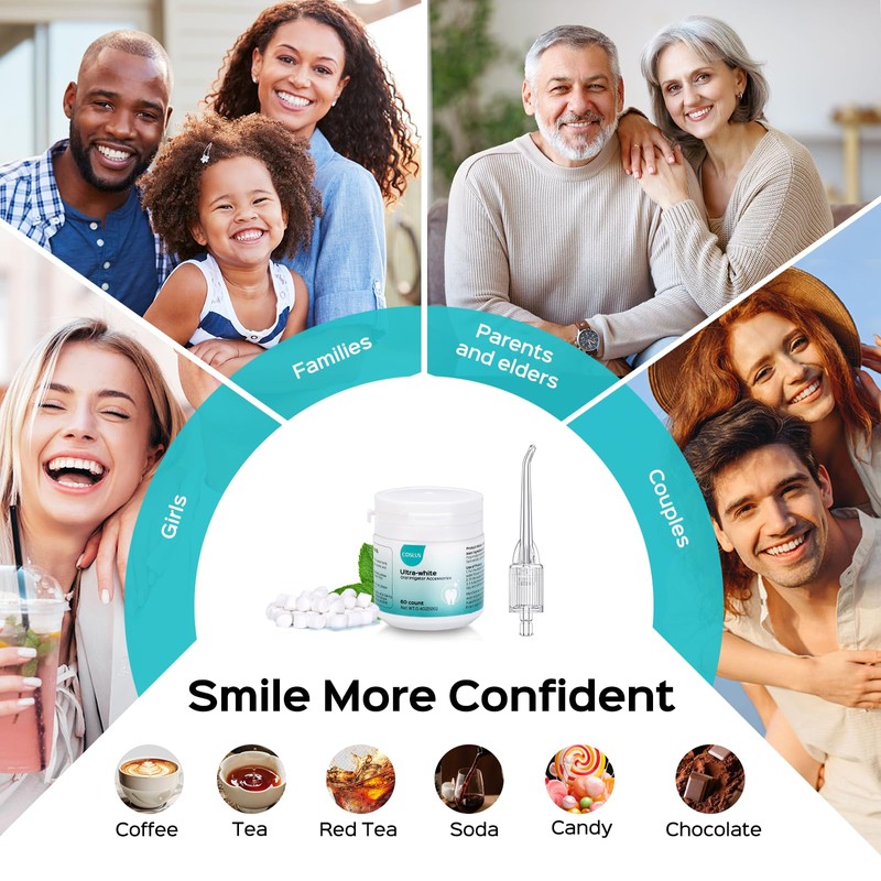 - Easy to Use, Refreshing Oral Cleaning Experience: Insert the whitening nozzle into the Portable water teeth jet pik, twist to open, insert one whitening mint at a time, and then choose the appropriate cleaning mode to clean your teeth as usual. The COSLUS whitening water dental flossers delivers high-pressure pulses to quickly mix the Minty Whitening with water, the minty fresh flavor provides a fun and friendly teeth whitening and cleaning experience. (Recommended storage in a dry place)
