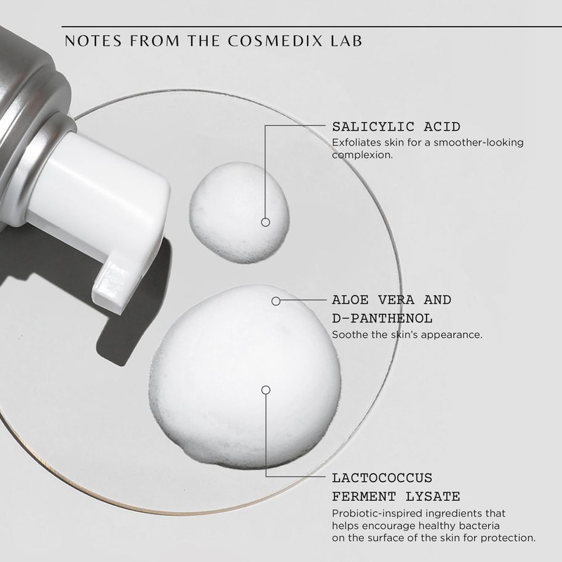 COSMEDIX Clarify Salicylic Acid Foaming Cleanser, Exfoliates Sensitive and Blemish-Prone Skin, Aloe Vera, Alcohol and Sulfate Free, Cruelty-Free, Gluten Free