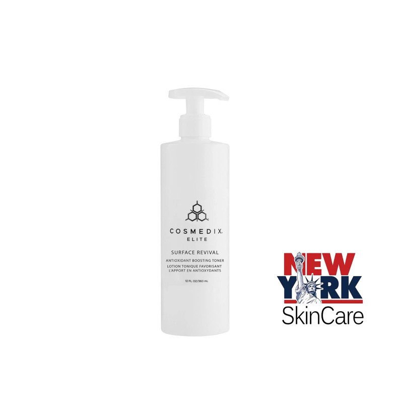 Cosmedix elite surface revival 360ml: The Cosmedix elite surface revival is a professional-grade exfoliating treatment that comes in a generous size of 360ml. This advanced formula is designed to deeply exfoliate the skin, promoting a smoother and more refined complexion. It contains a blend of gentle acids, enzymes, and antioxidants to remove dead skin cells, reduce the appearance of fine lines and wrinkles, and improve skin texture. The Cosmedix elite surface revival helps to reveal a brighter, more youthful-looking skin with improved clarity and radiance.